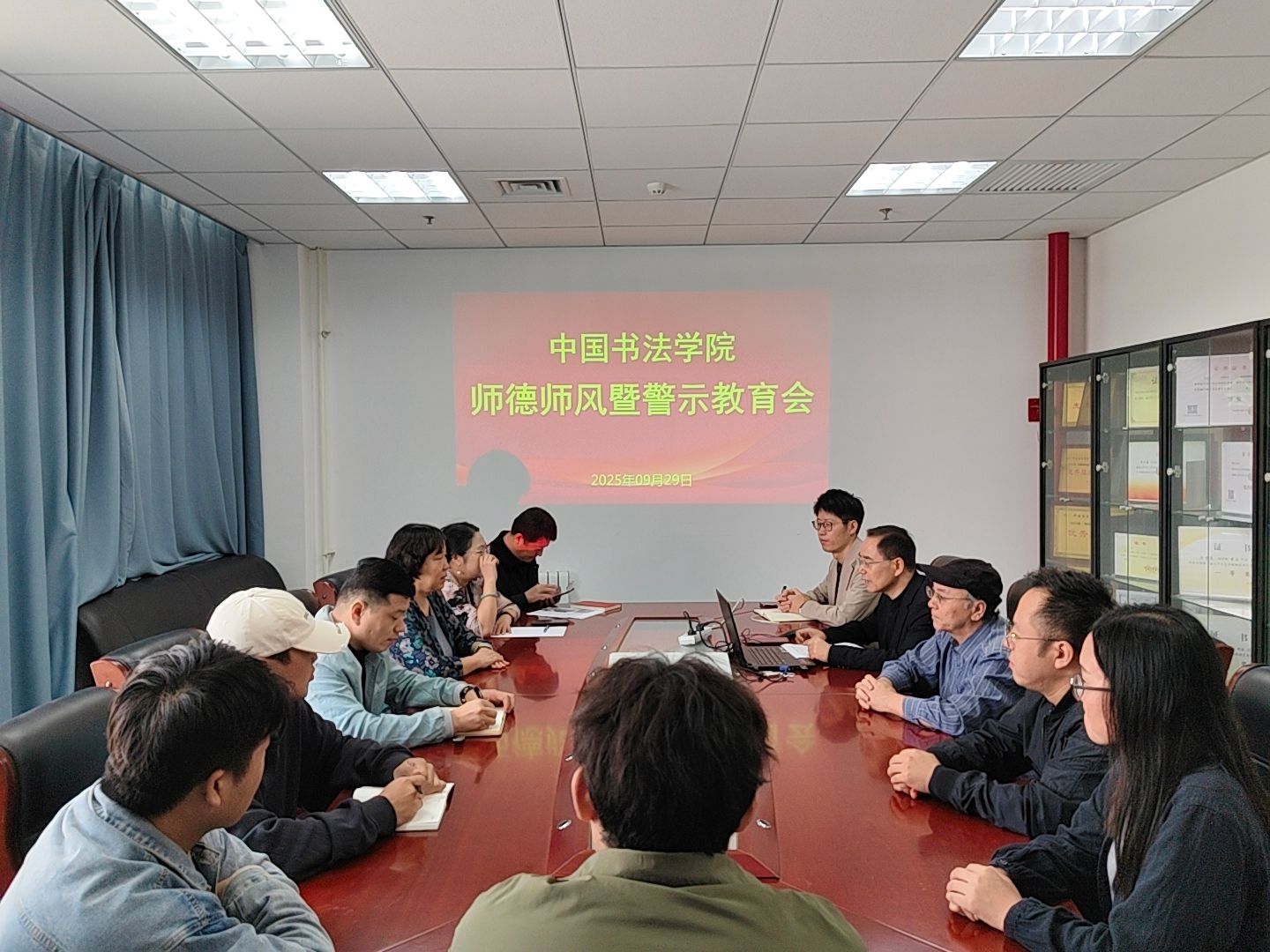 为深入学习贯彻党的二十大和二十届三中全会精神,进一步巩固拓展深入贯彻中央八项规定精神学习教育成果,持续推进党风廉政与师德师风建设,9月29日,中国书法学院在教9楼406会议室召开了师德师风暨警示教育会议。学院全体教职工参加会议,会议由学院党委书记王若鸿主持。