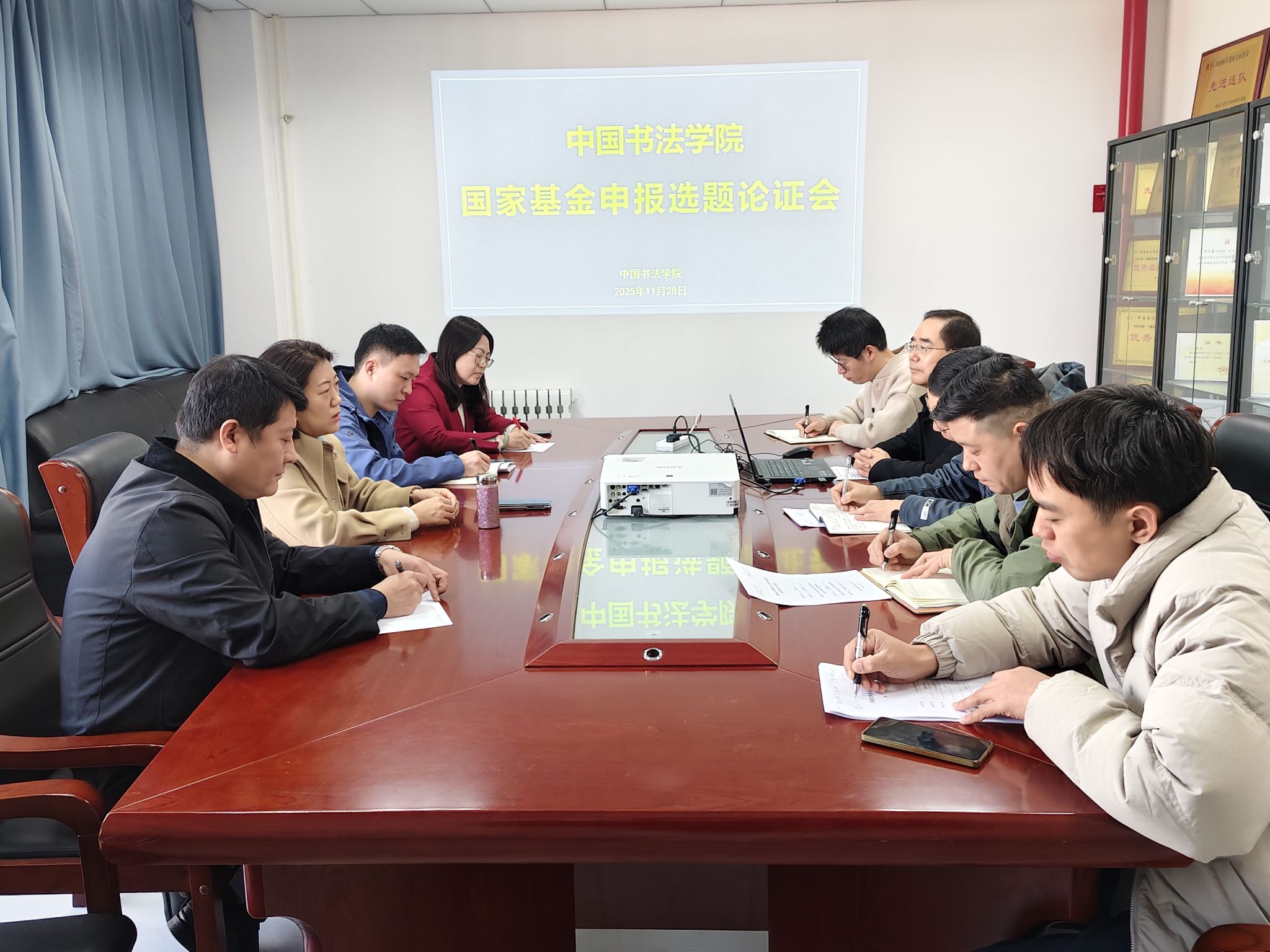 11月28日上午,为提升全院教师国家社科基金申报质量,夯实科研项目申报基础,中国书法学院在教九楼406会议室召开国家社科基金申报选题论证会,特邀请西安美术学院书法系副主任常春教授进行专项指导,学院全体申报教师参会,会议由院长王若鸿主持。