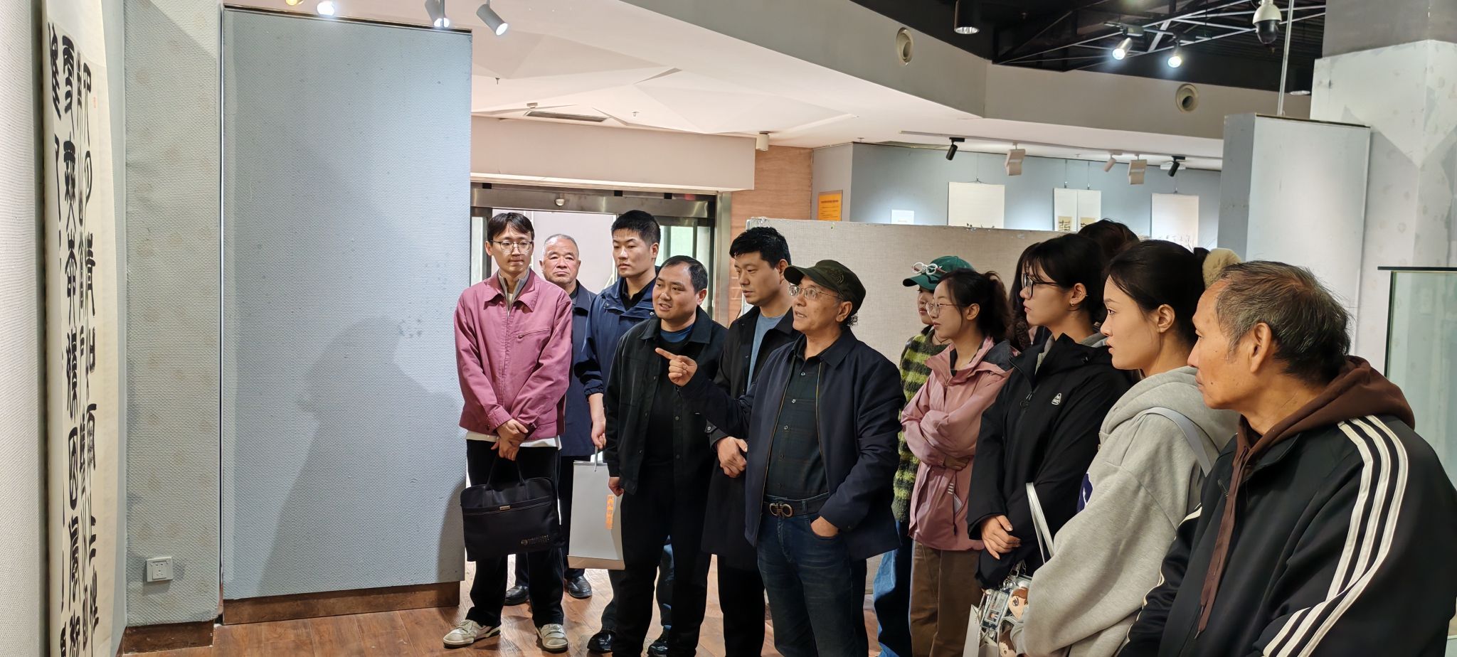 我院名誉院长于唯德教授现场为师生讲解作品,或深研魏晋风韵,或取法商周吉金,或师承秦汉石刻,或熔铸唐宋精神,真草隶篆各呈其妙,碑帖交融尽显风流。通过此次现场教学,增强了学生对传统经典的深刻理解,更领悟了在守正创新中的独特创作理念。