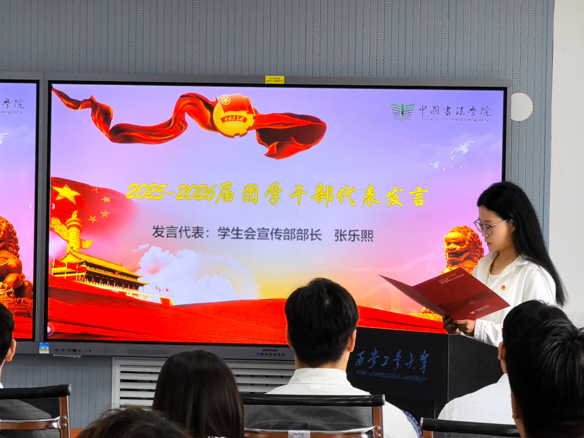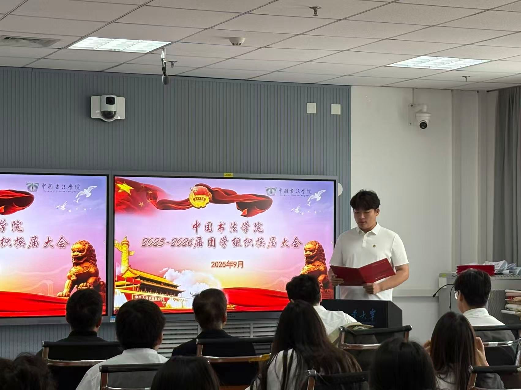 9月19日上午10时,中国书法学院2025-2026届团委学生会青协换届大会,在教9—414学院报告厅举行。院党委书记王若鸿老师、学院团委书记黄星光老师出席,团委副书记魏彦磊、崔方译。学生会主席庞志俊、各部门部长、干事近50人参加会议。