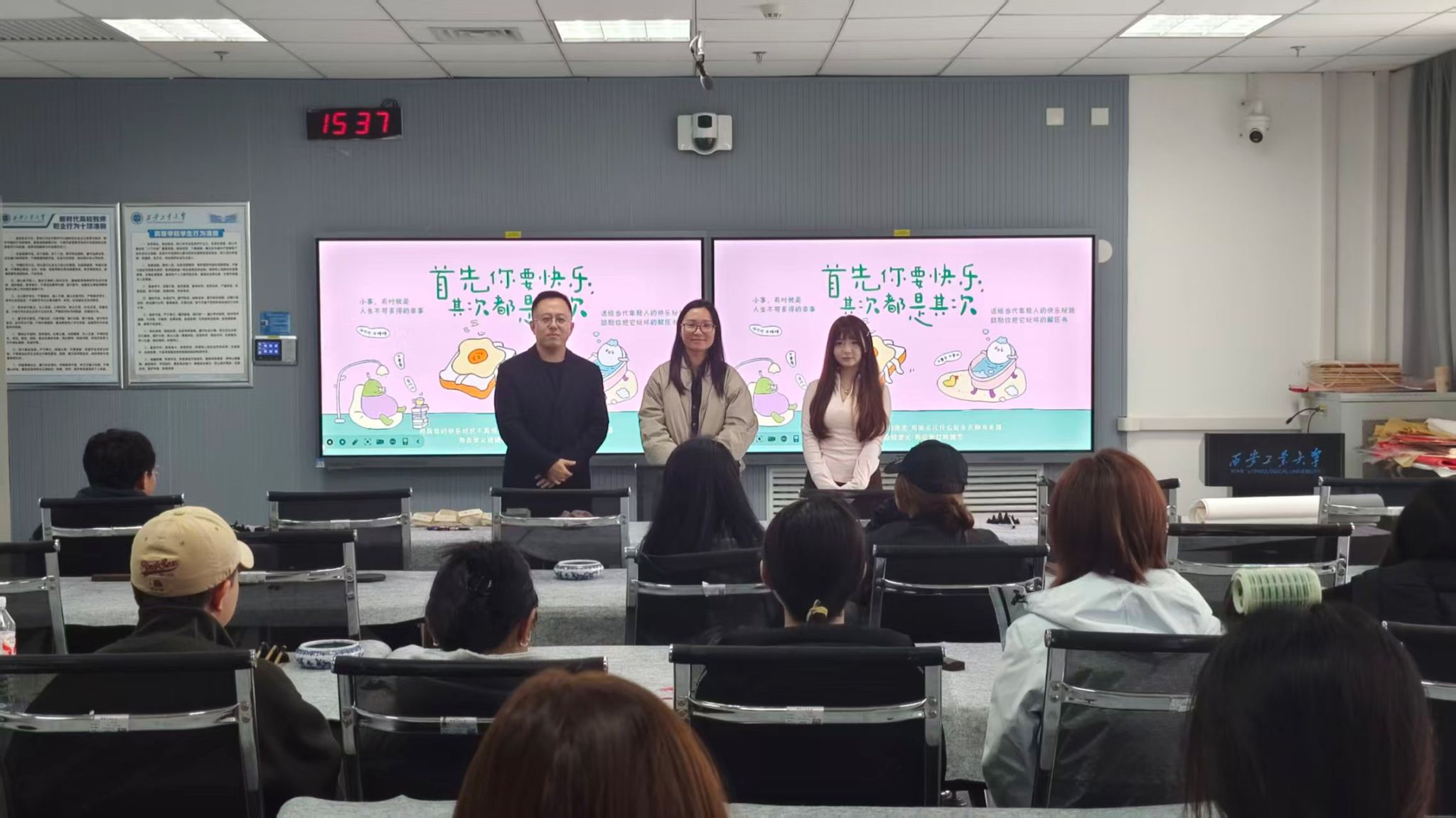 游戏结束后,张秦沐再次讲解负面情绪的来源及处理方法。她指出,负面情绪可能源于学业压力、人际关系误解、自我期待过高或生活琐事积累,关键在于学会科学疏导与接纳。她分享了实用的调节方法:深呼吸、正念冥想、运动、听音乐、写日记以及主动沟通倾诉,帮助同学们更好地应对情绪波动。