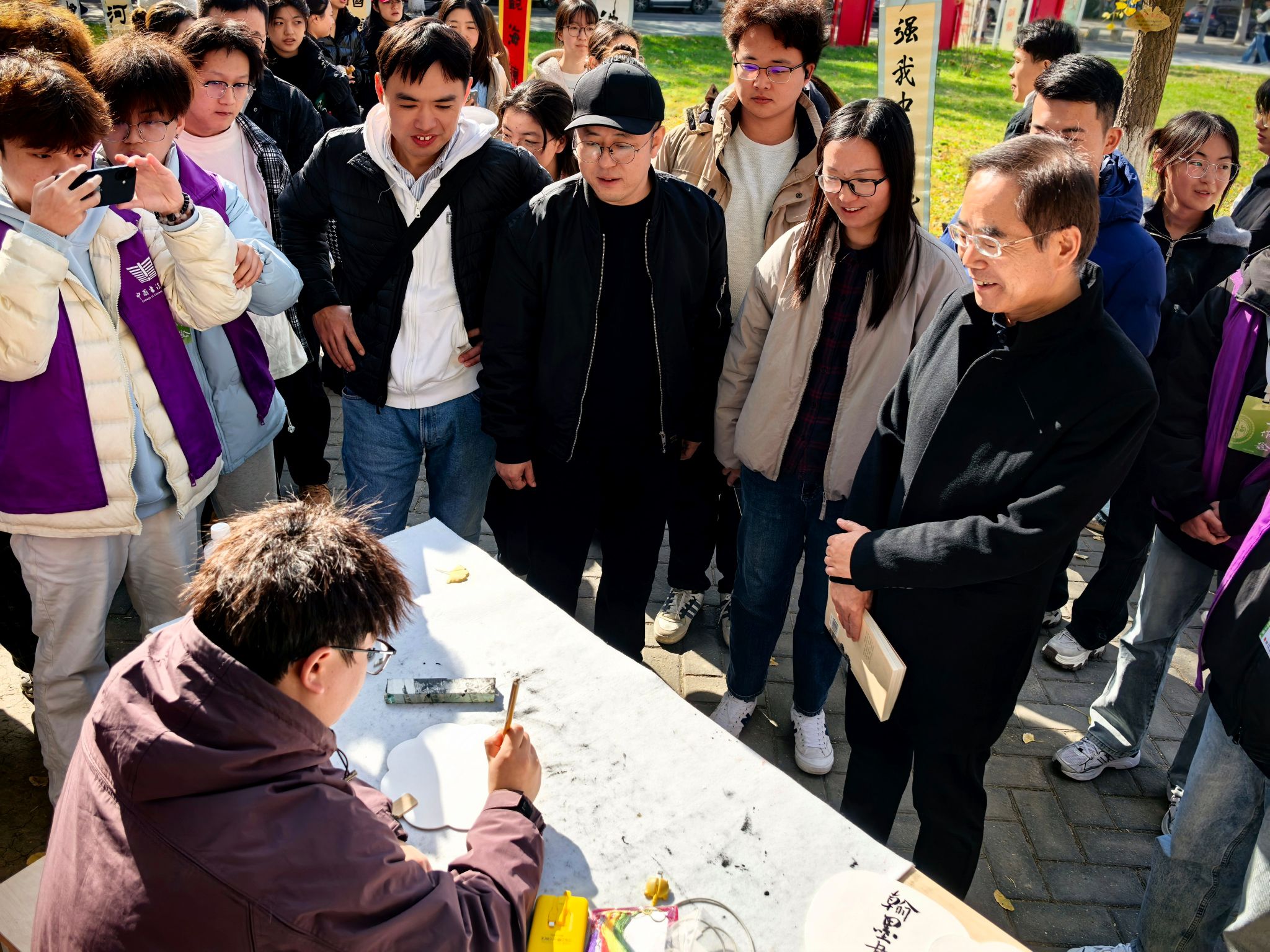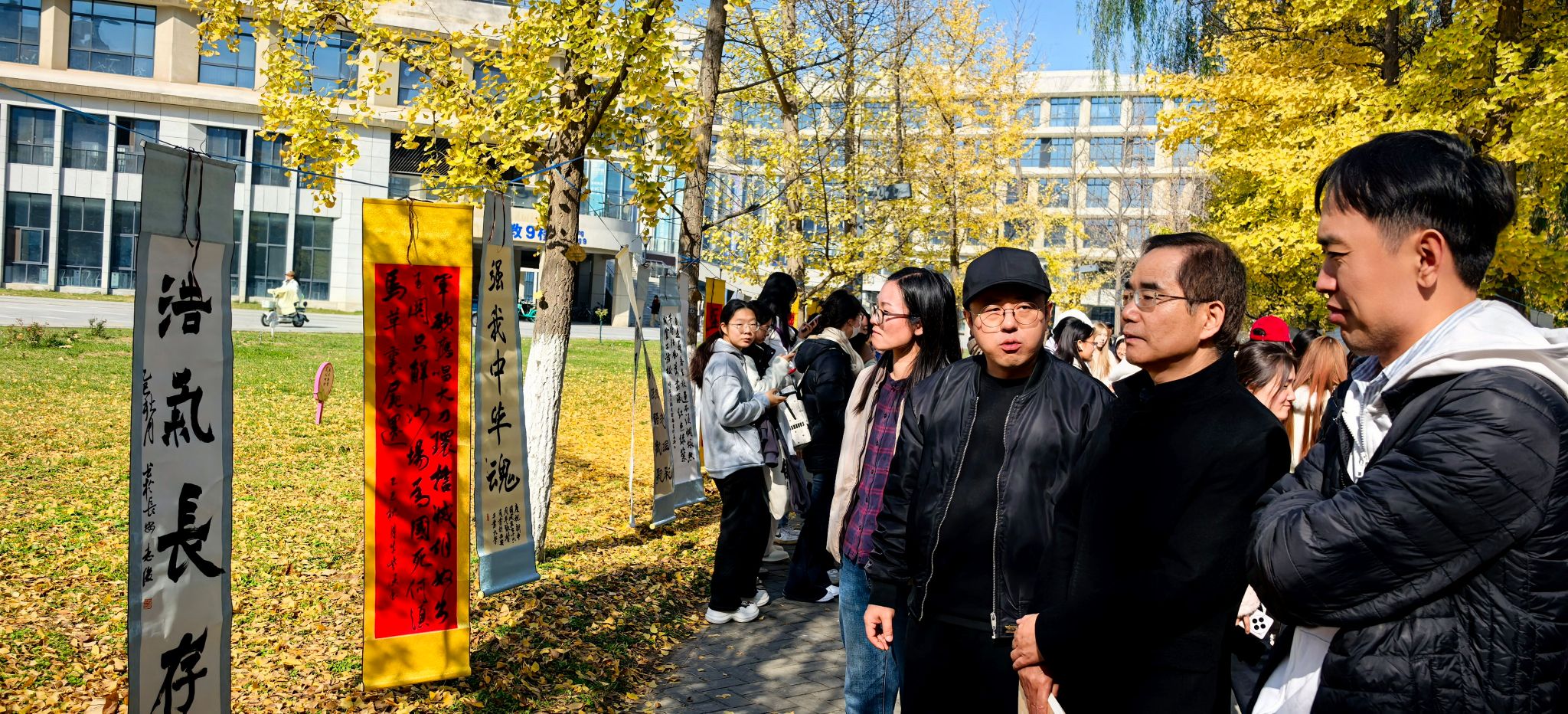 2025年11月21日,中国书法学院在银杏大道举办了主题为“金秋校园,翰墨书香”的书法展。此次书法展旨在弘扬中华优秀传统文化,展示书法艺术的独特魅力,丰富校园文化生活,活动取得了圆满成功。学院院长王若鸿、教师成万东、本科生辅导员黄星光以及研究生辅导员王小利出席了开幕式,学院全体学生积极参与,现场气氛热烈。