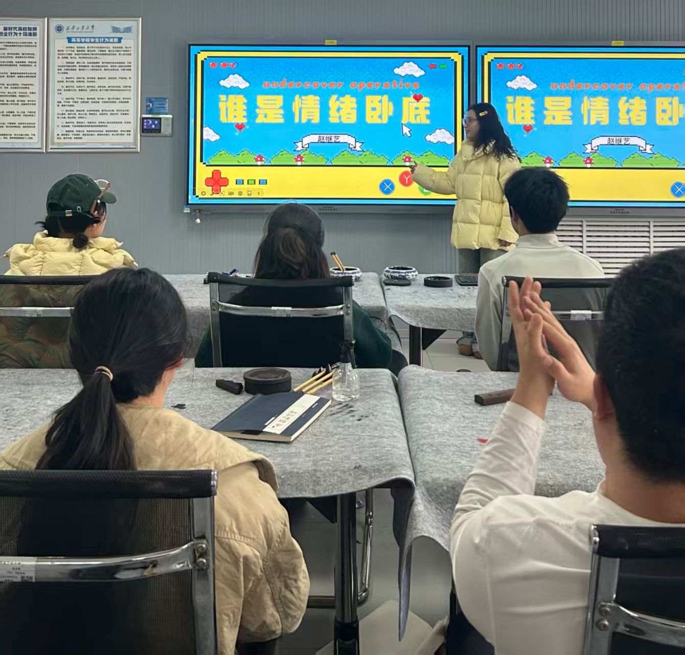 针对研究生群体因科研、论文等压力而产生的伪装性负面情绪,如将“自我怀疑”包装成“佛系躺平”等,12月3日,中国书法学院为研二学生开展了一场名为“情绪卧底”的心理活动主题班会,旨在帮助学生识别并正视这些隐性情绪,实现心理健康教育的精准渗透。活动由研二心理委员赵继艺主持。