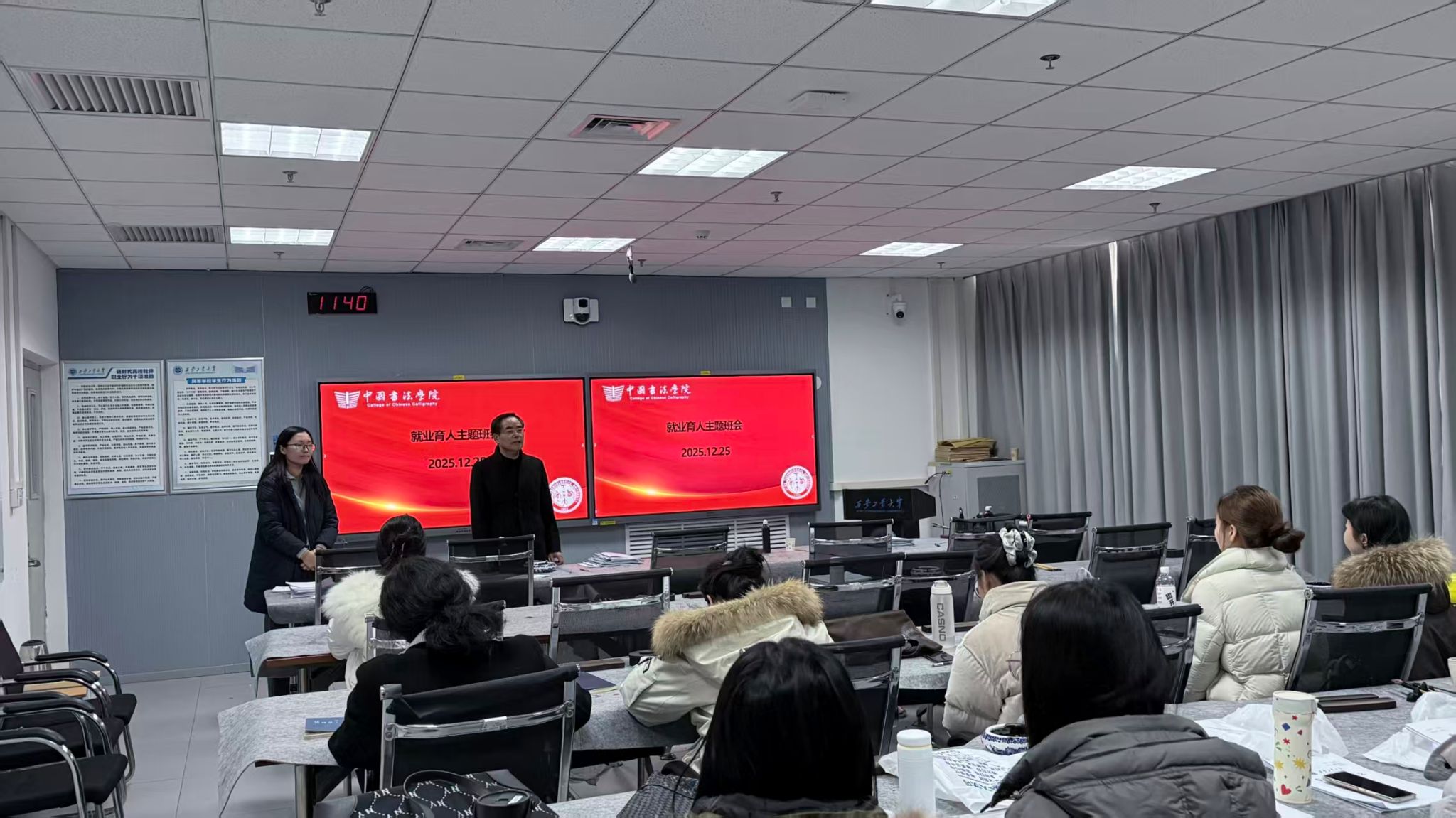 为切实增强 2026 届研究生的就业意识,提升就业能力,明确职业发展方向,12月25日,中国书法学院成功举行了“就业育人面对面”研究生就业主题班会。学院院长王若鸿出席会议,2026届研究生参会,会议由辅导员王小利主持。